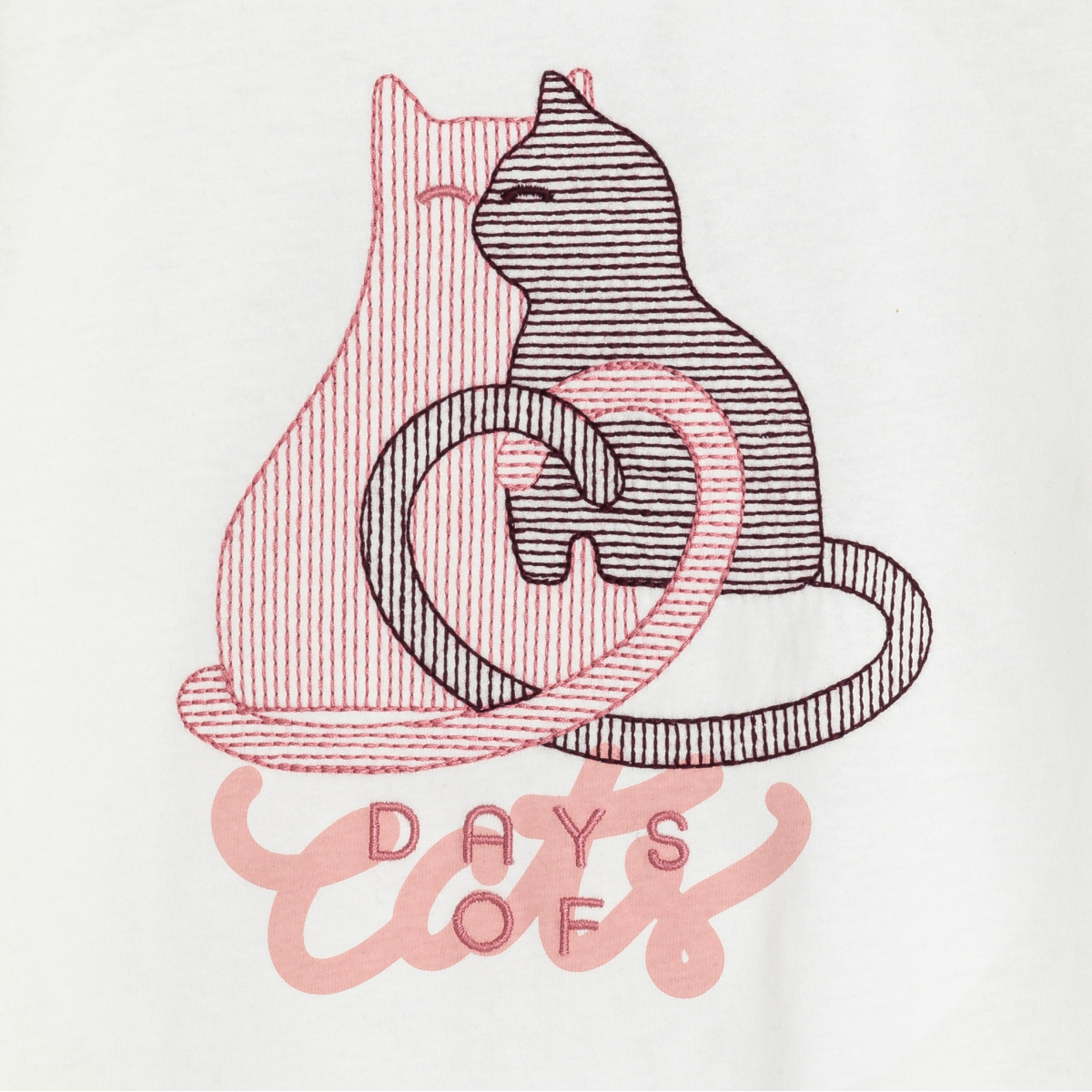تيشيرت أبيض مُزيًّن برسمة قط، للفتيات