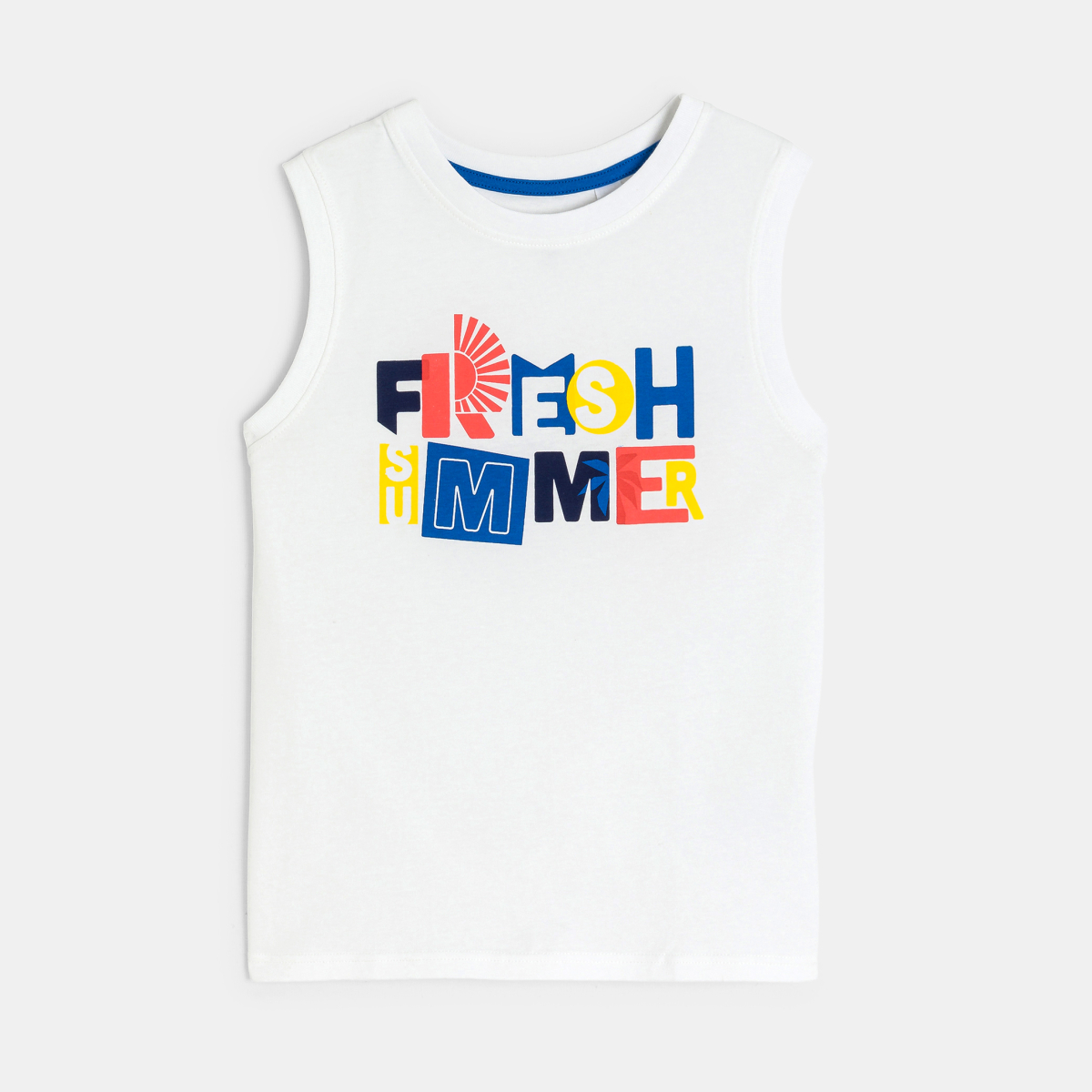 تانك توب مزين بطبعة عبارة باللون الأبيض للأولاد