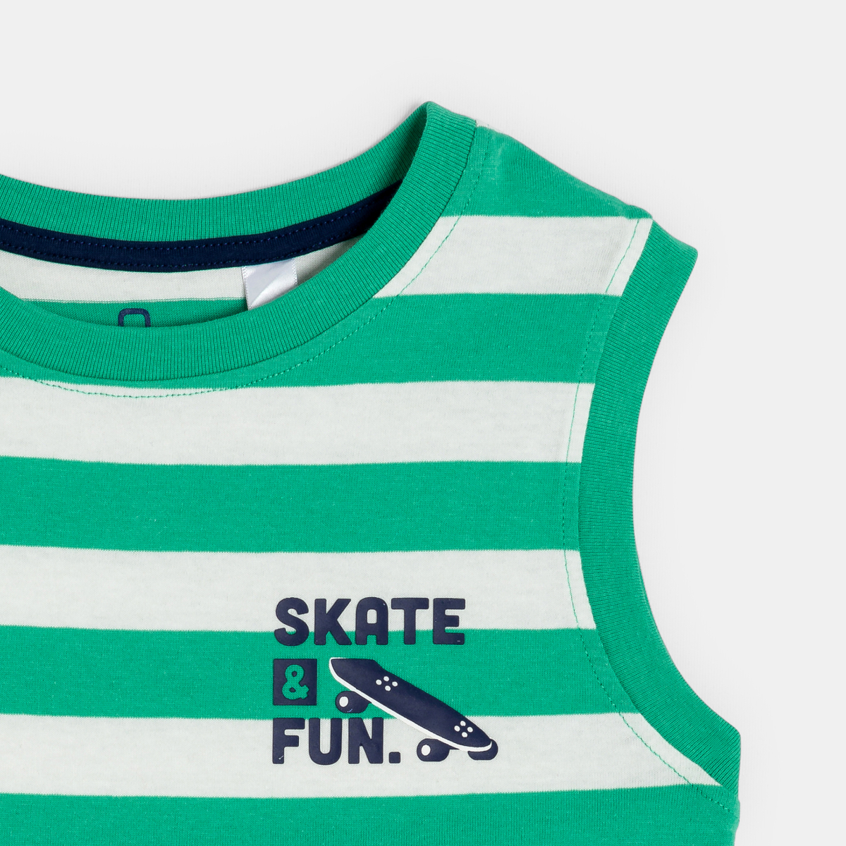 تضفي الخطوط المقلمة لمسة بحرية على إطلالتك: إنها منعشة للغاية! عاش هذا التشيرت بدون أكمام ولوح التزلج المطبوع على الصدر. القماش جيرسيه ناعم وممتع في الارتداء. قصّة مستقيمة. ياقة مستديرة، سهل الارتداء. أكمام بتقويرة هالتر الحواف مضلعة. الحافة السفلية مستقيمة. خياطة من اللون ذاته.