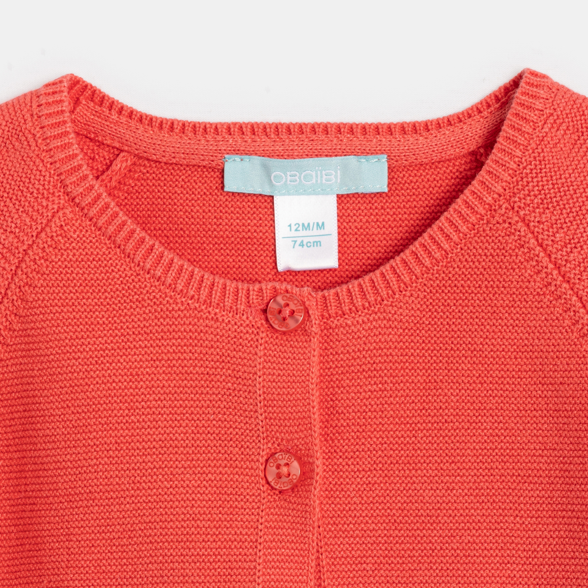 تحب الفتيات مرونة الغرزة المميزة على هذه السترة التي تضفي مزيدا من النعومة والأناقة. فتحة رقبة مستديرة مغلقة بزرين في الأعلى مع تأثير متماسك. أكمام رغلان مريحة للغاية مع لمسات نهائية مضلّعة على الحواف.