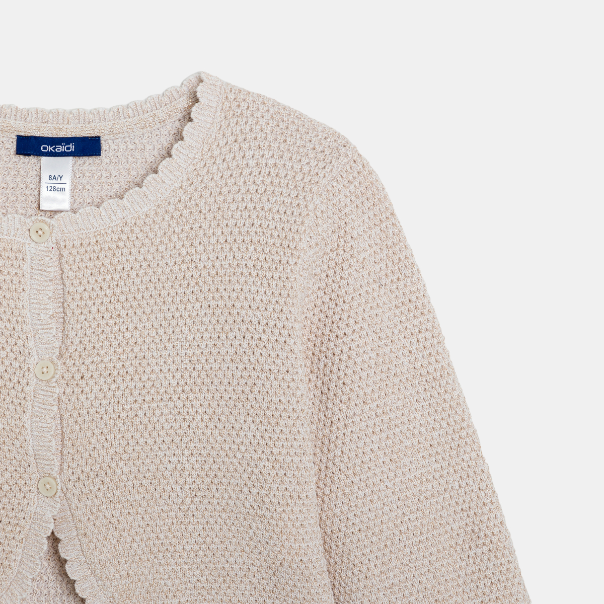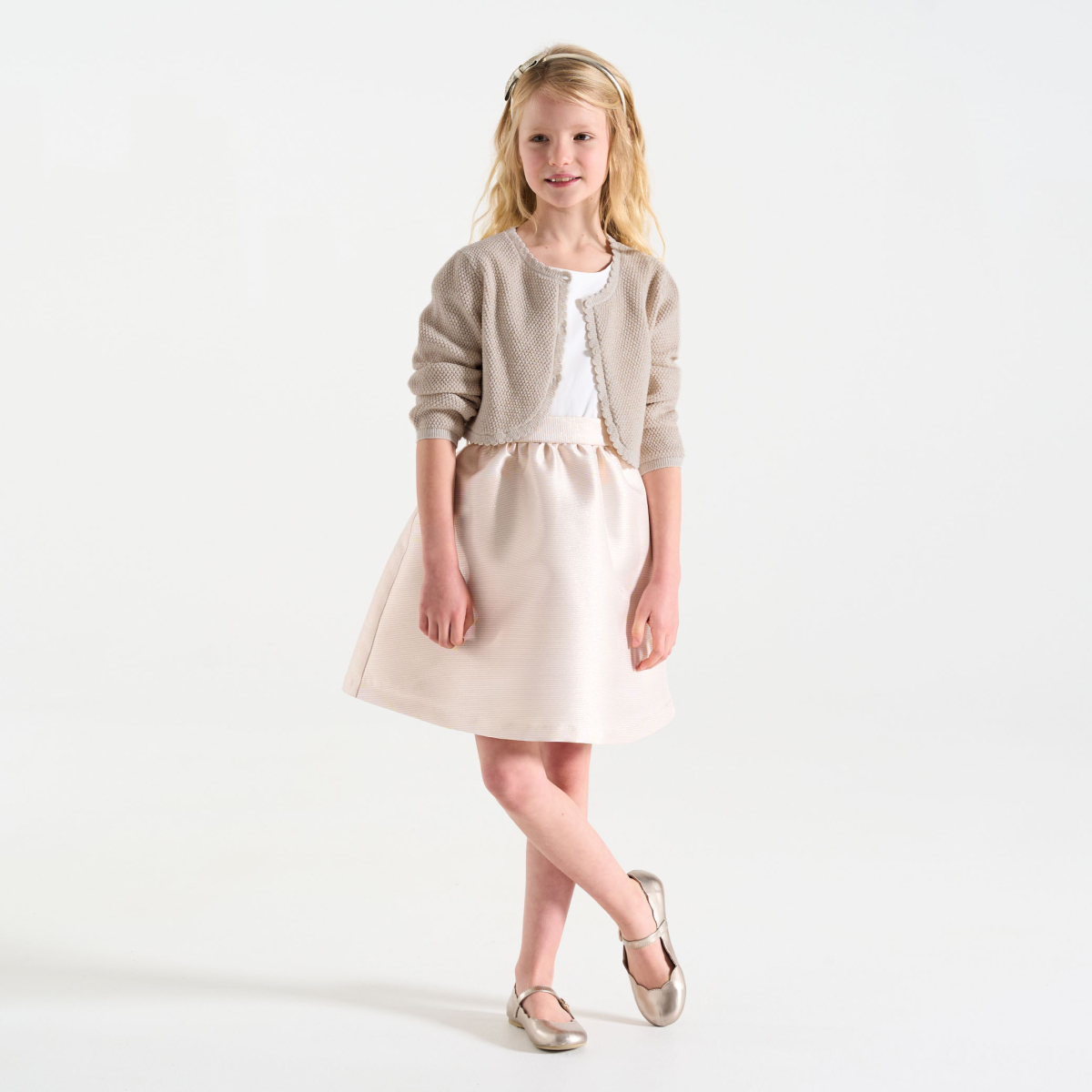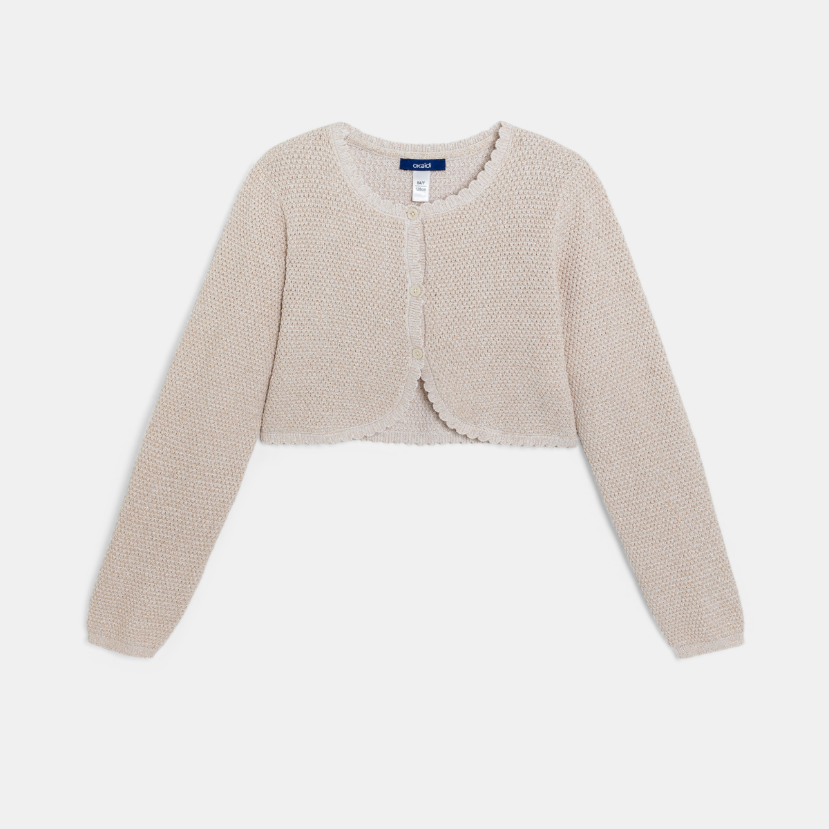 سترة بوليرو من نسيج مزخرف فاخر باللون البيج للفتيات