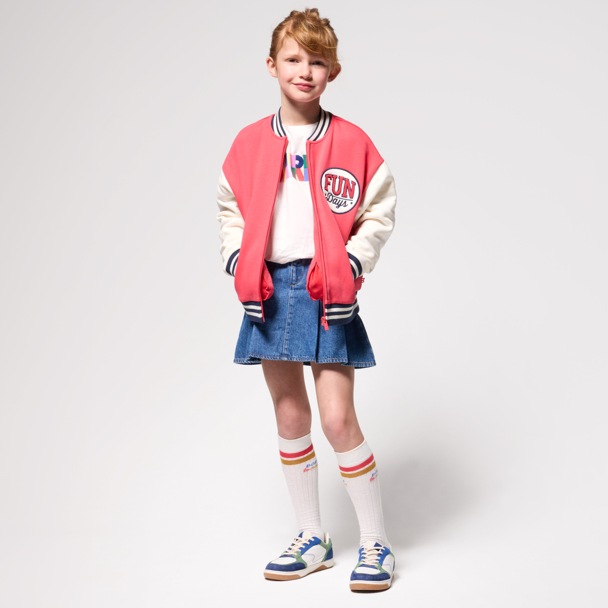 هذه السترة التيدي بطراز الجامعة والطراز الصبياني لدى الفتيات، مصنوعة من الميلتون الناعم والسميك: إنها على الموضة! قصّة مستقيمة. ياقة مستديرة. الفتح بسحّاب. شعار مطرز على الصدر. أكتاف الأكمام منسدلة. جيبان. أكمام طويلة. الحافة السفلية مستقيمة. التشطيب بحواف مضلعة مقلمة.