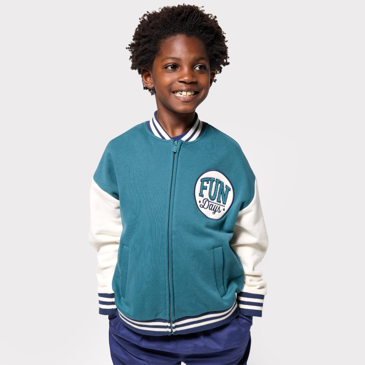 سويت شيرت تيدي، أخضر اللون، طراز الجامعة، للأولاد