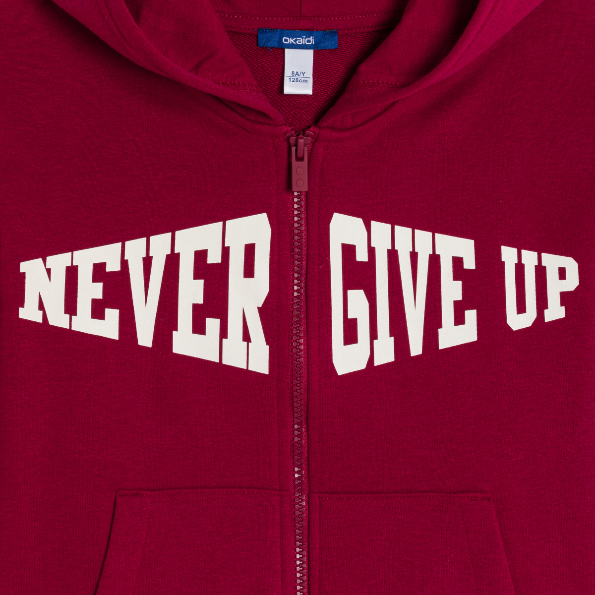 "Never give up"! يشعر الأولاد بالحماس مع الرسالة القوية على هذا السويت شيرت بغطاء الرأس. قماش من الصوف الناعم، وبطانة سميكة. قلنسوة فتحة بسحاب من الأمام. أكمام طويلة. جيبان كنغرو. الحافة السفلية مستقيمة. الحواف مضلعة.