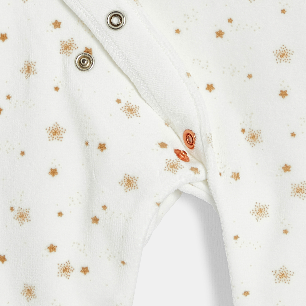 Description La tête dans les étoiles pour des nuits douces c'est la promesse de ce pyjama forme une pièce qui réchauffe les petits. En velours souple et confortable avec une ouverture par pressions devant pour habiller les garçons sur le dos facilement.