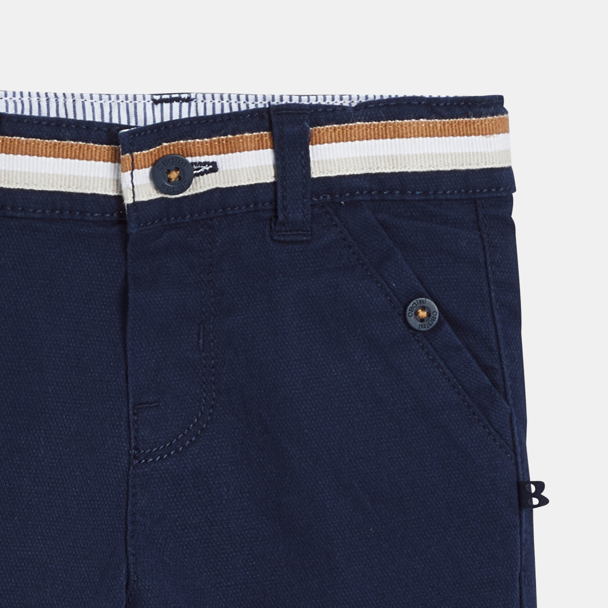 Pour les jours de fête ce pantalon en coton fantaisie habille les garçons élégants ! Avec sa taille effet ceinture rayée il se porte avec une chemise ou un polo et assure un look preppy qu'on adore.