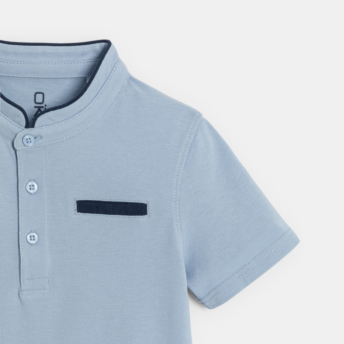 Description nEsprit sportswear chic pour un polo pas comme les autres : le col Mao lui donne une pointe du2019originalité bienvenue ! Jersey piqué. Coupe droite. Col à ouverture boutonnée enfilage facile. 1 poche poitrine. Manches courtes. Base droite. Coutures ton sur ton.n