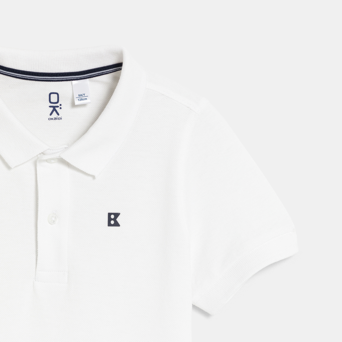 Description T-shirt / Polo garçon basique. Jersey de coton piqué. Coupe droite. Col polo côtelé ouverture boutonnée enfilage facile. Picto Okaïdi à lu2019encre gonflante sur la poitrine. Manches courtes bord côtelé. Base droite. Fentes côtés. Finition surpiquée.
