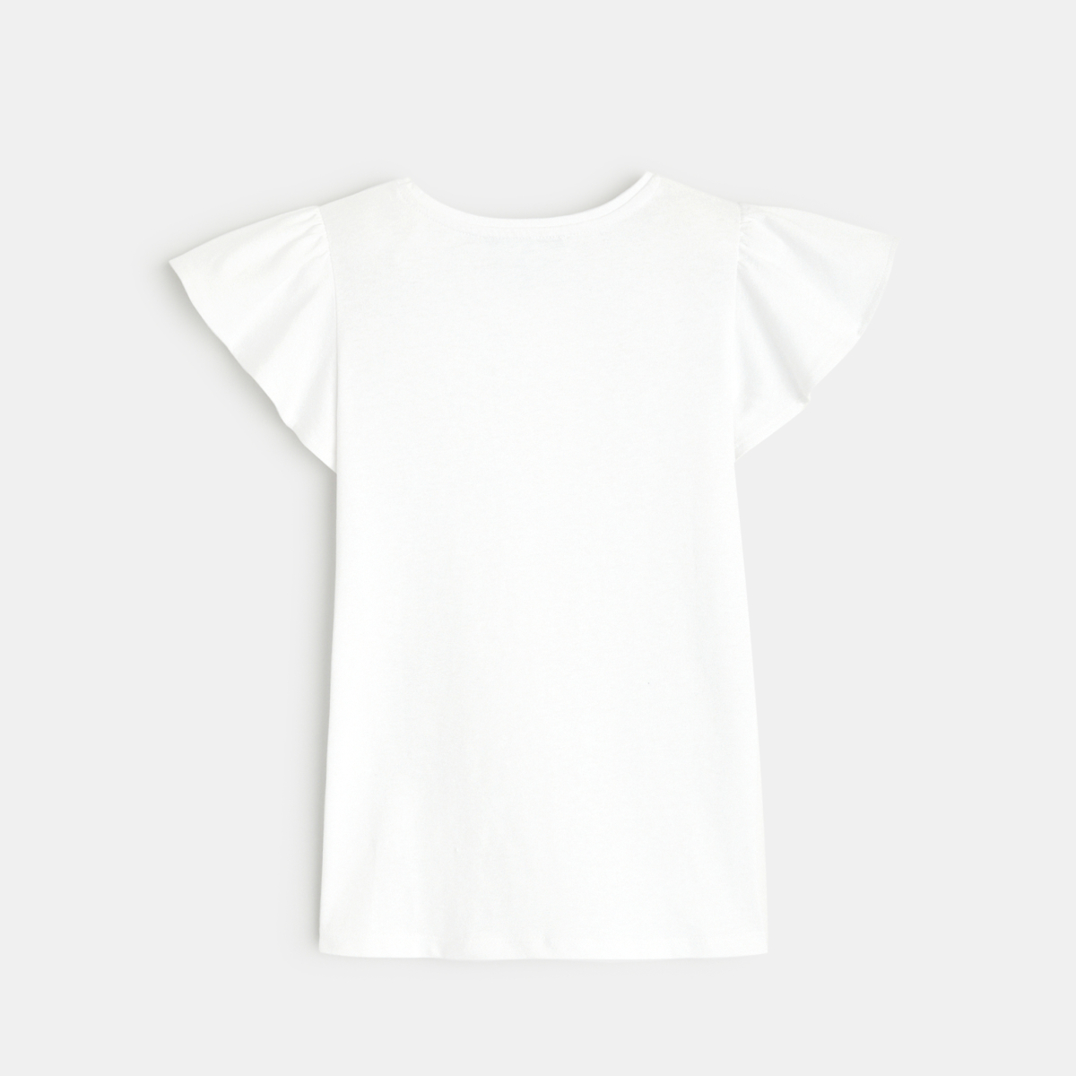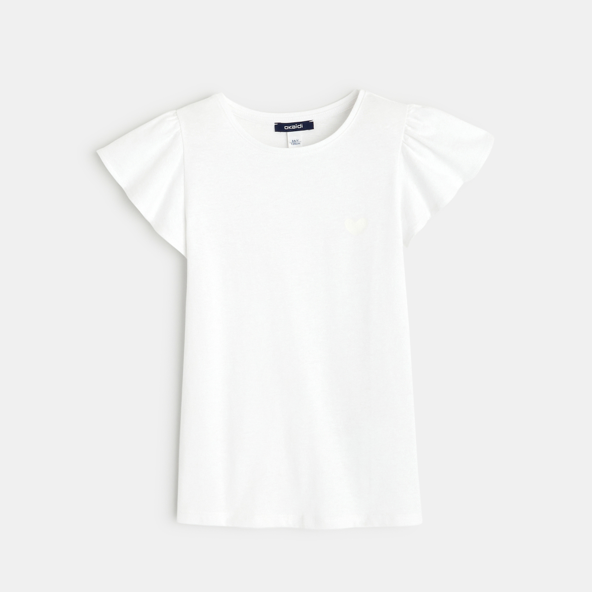 A aimer tout de suite. A découvrir dans plusieurs coloris. Ce t-shirt en jersey doux plaît aux filles grâce à l'originalité de ses manches courtes et volantées : ça apporte de la légèreté à l'allure. Coupe droite. Col rond. Bas droite.