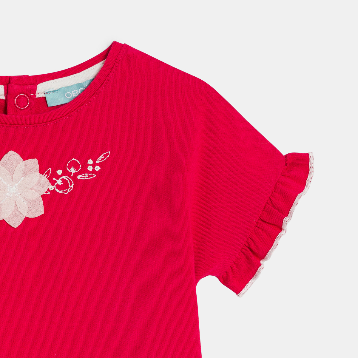 Avec ses manches courtes volantées et son imprimé fleuri, ce tee-shirt a tout bon ! Une base droite confortable et des pressions dos pour habiller facilement les filles.