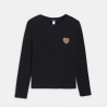 Tout cool. Très tendance. Un cœur brodé, motif léopard en jacquard, et ça change tout pour ce t-shirt en jersey doux et côtelé ! Coupe droite. Col rond. Manches longues. Dos uni. Coutures ton sur ton.